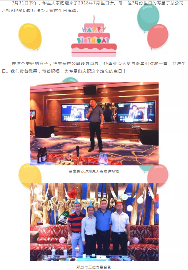 【团队风采】华宝资产举办7月员工生日会