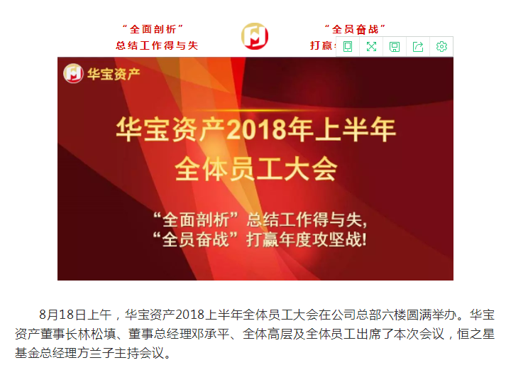 8月18日上午,华宝资产2018上半年全体员工大会在公司总部六楼圆满举办。