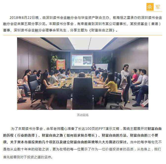 深圳读书会金融分会第5期 | 主题分享:财富自由之路