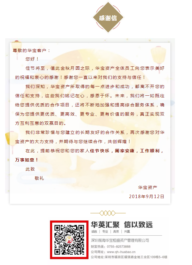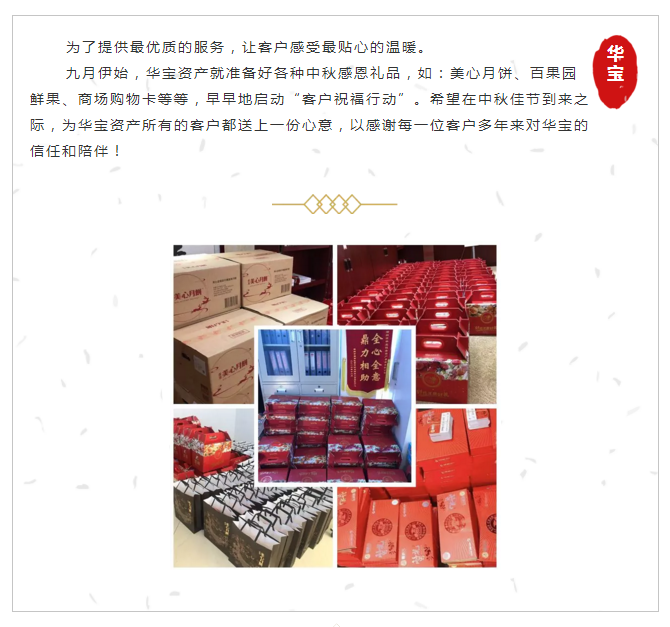 希望在中秋佳节到来之际,为华宝资产所有的客户都送上一份心意,以感谢每一位客户多年来对华宝的信任和陪伴!