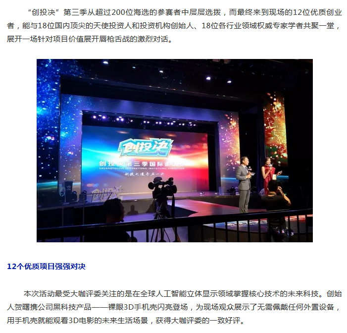 9月18日,“创投决”第三季国际邀请赛在深圳现代演艺中心圆满拉开帷幕