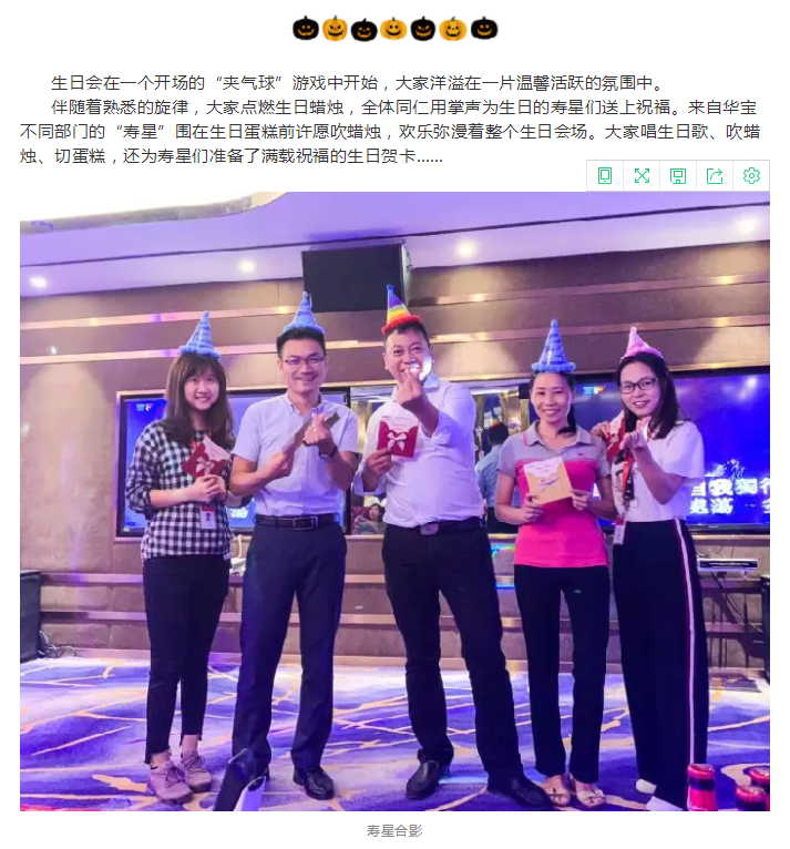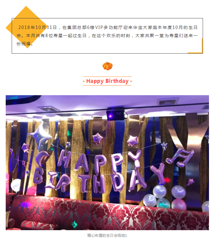 2018年10月31日,在集团总部6楼VIP多功能厅迎来华宝大家庭本年度10月的生日会。