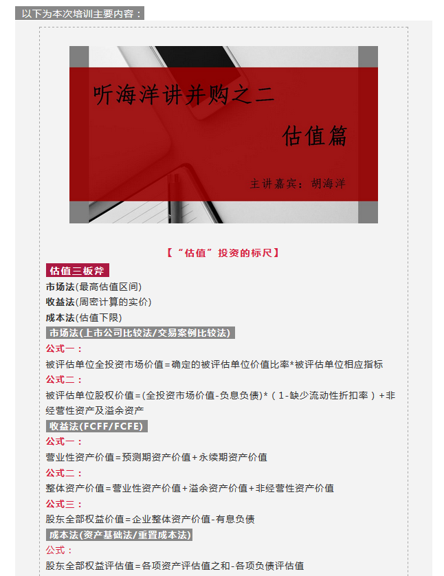 深圳读书会金融分会第10期 | 听海洋讲并购之二 “估值”投资的标尺