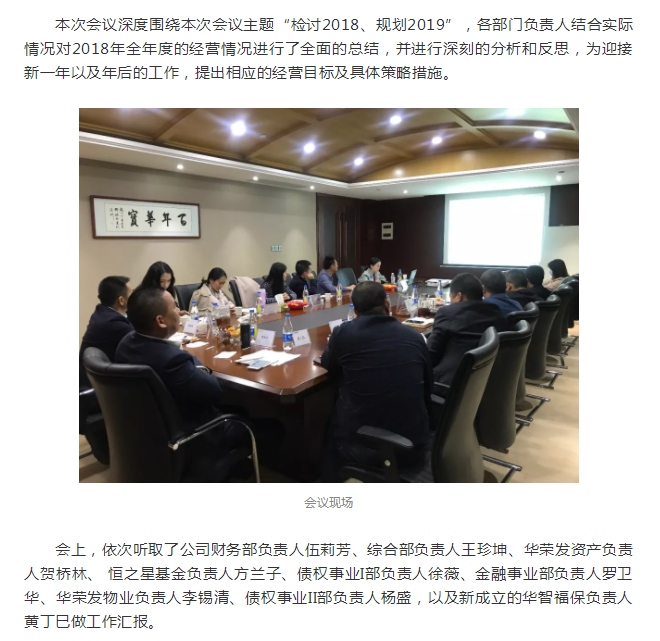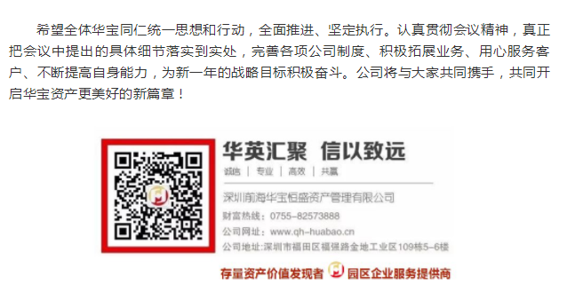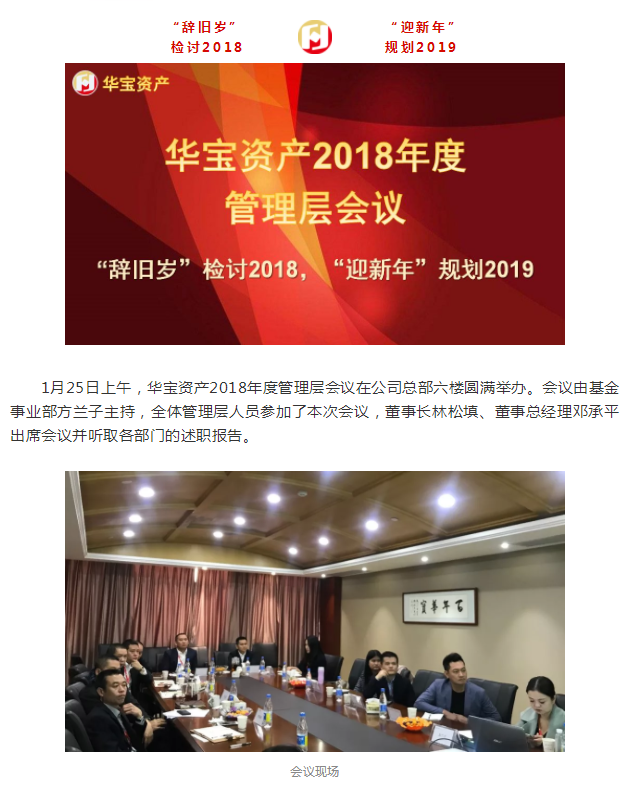 1月25日上午,华宝资产2018年度管理层会议在公司总部六楼圆满举办。