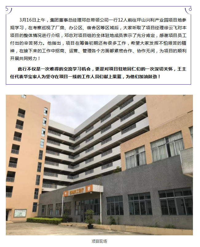 3月16日上午,集团董事总经理邓总带领公司一行12人前往坪山兴利产业园项目地参观学习。