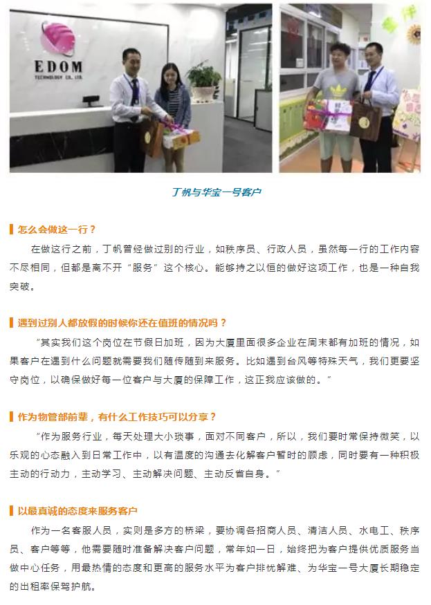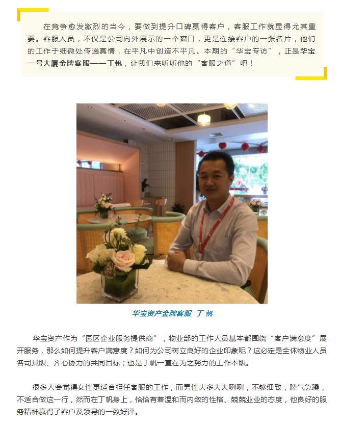 本期的“华宝专访”,正是华宝一号大厦金牌客服——丁帆,让我们来听听他的“客服之道”吧!
