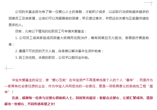 汇聚力量,让爱传递——华宝资产“关爱基金”
